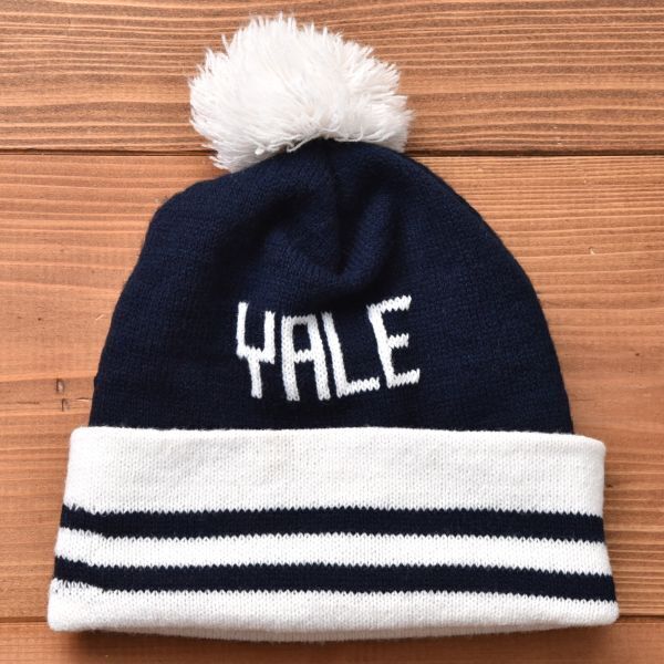 > 希少! 良好! ヴィンテージ YALE大学 ブルドッグ ニット キャップ アイビーリーグ カレッジ ビーニー 帽子 ボンボン