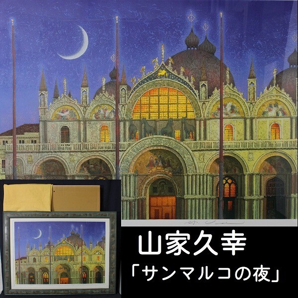 - 【未使用】 山家久幸 「サンマルコの夜(ヴェニス)」 大判 シルクスクリーン 限定70部 直筆サイン入 D575