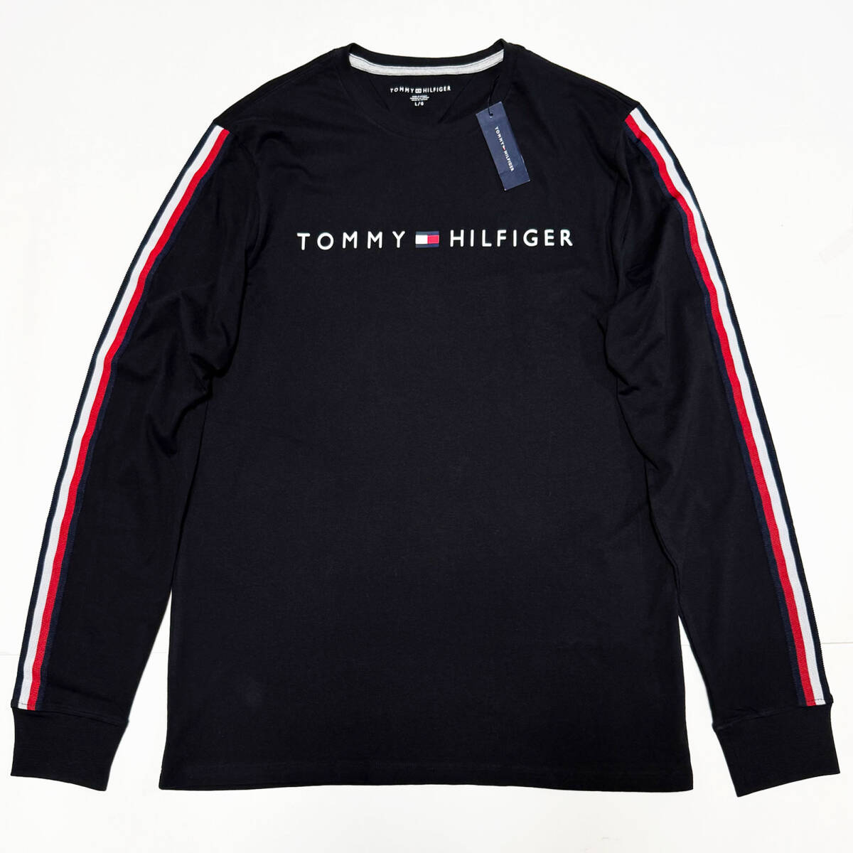 > ■TOMMY HILFIGER/トミーヒルフィガー・コットン長袖Tシャツ・ブラックL/G品■