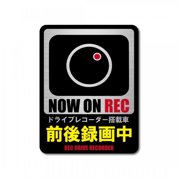 - ドラレコステッカー 前後方録画中 強粘着 マットラミネート 縦型 小サイズ ヘアライン 新品 W80 x H105 国内生産 防犯ドライブレコーダー