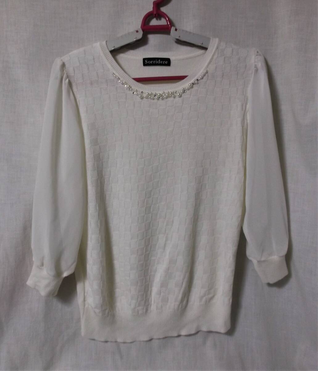 - ◎ [ Sorridere ](ソリデル) ・『 薄手のニットスタイル ・ デコルテパール ・ 腕部シフォンの透かしスタイル 』/ [ 美 品 ]