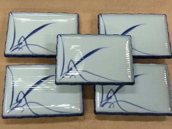 - 新品6枚1組【即決】角皿 刺身皿 焼き物皿 手描き