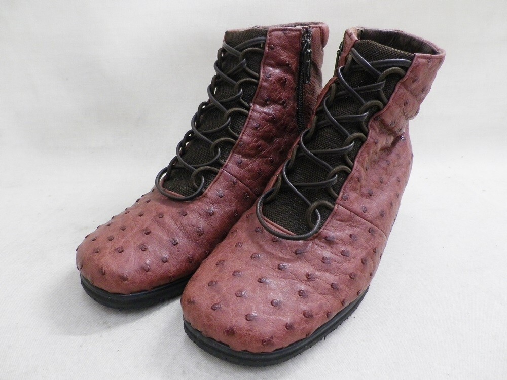 > 48●a074☆【22 1/2 EEE】USED美品 新宿屋 オーストリッチ ショートブーツ サイドジップ レディース shinjukuya 現状