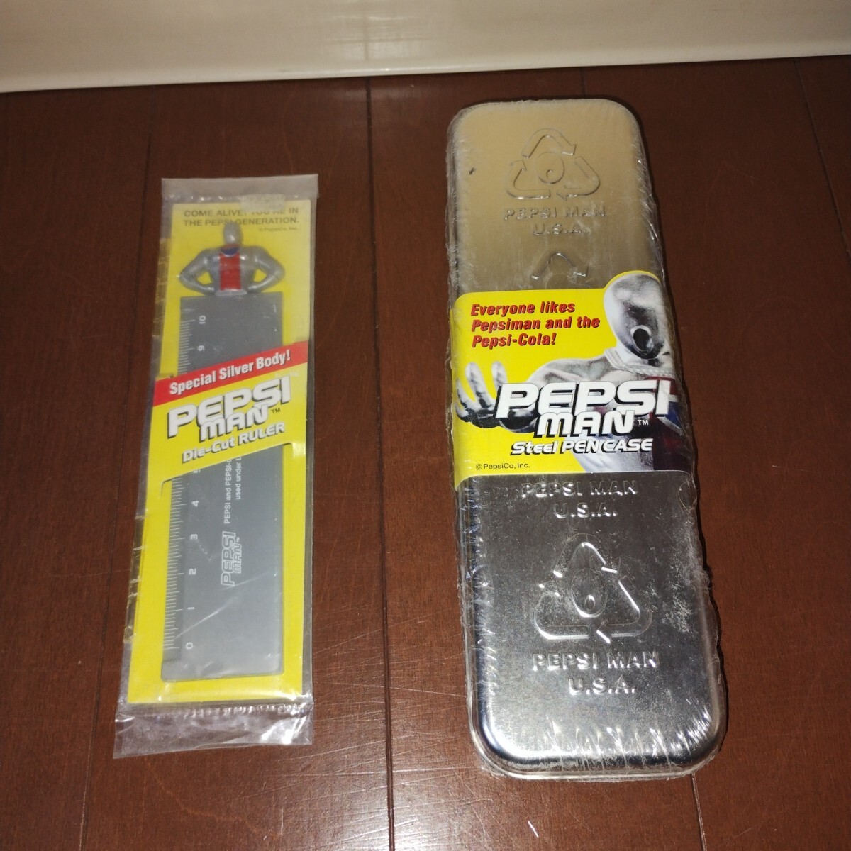 - ペプシコーラ ペプシマン(レッド) ペンケースと定規 未開封品