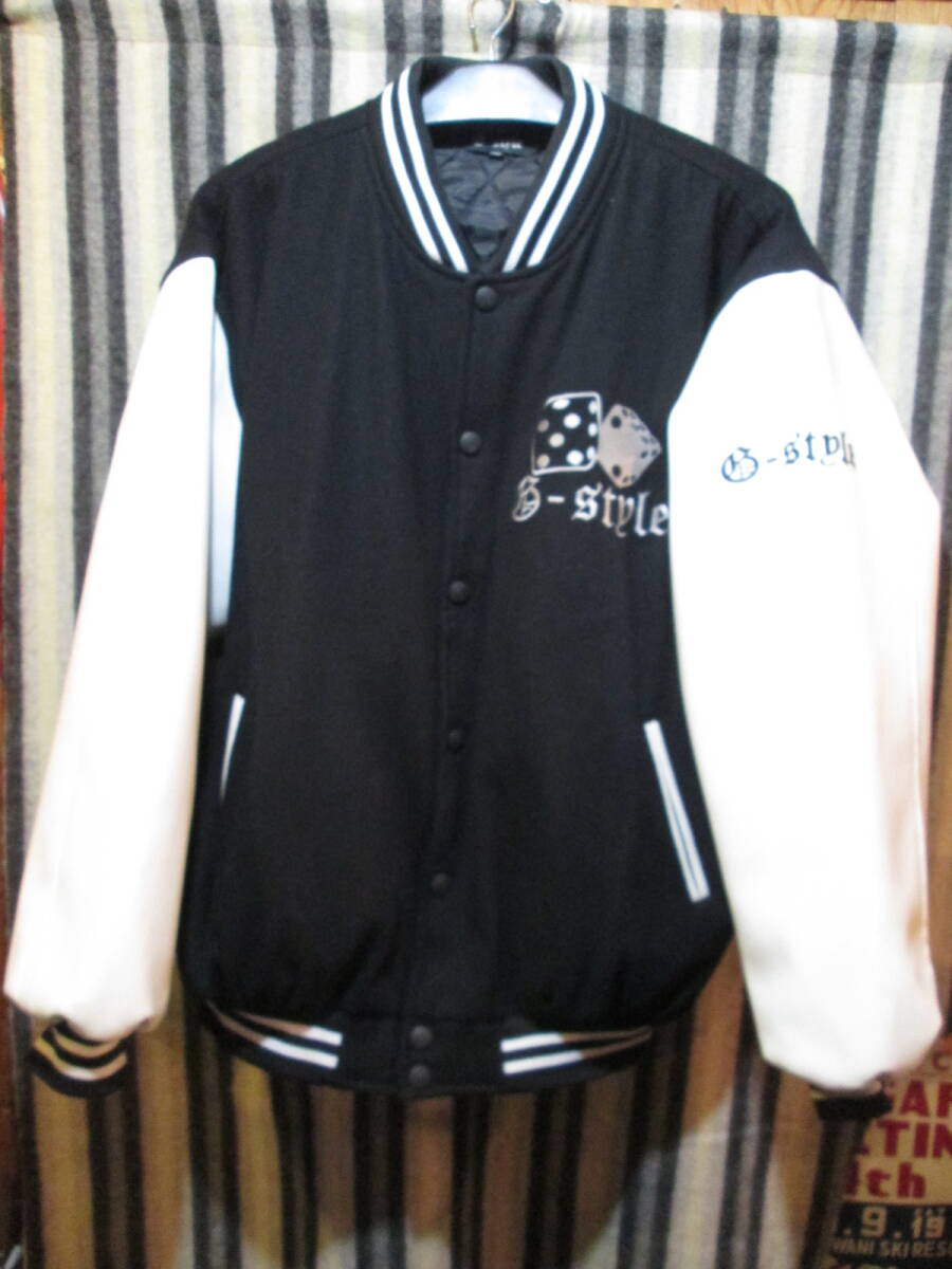 - 古着 BIGジャケット G-STYLE (XXXLサイズ)ジースタイル スタジャン 黒/白 ギャングスタ,ローライダー,ウェッサイ,チカーノ