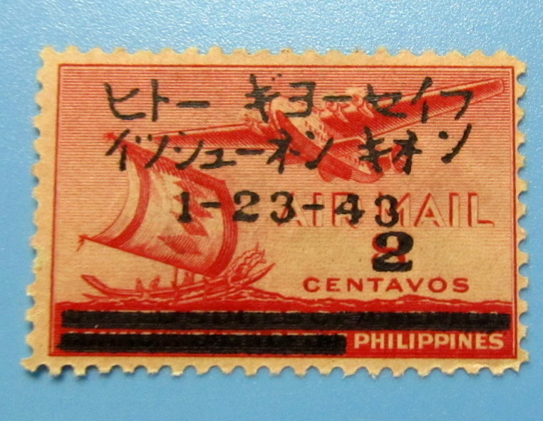 - 南方占領地切手 フィリピン 2C 比島行政府1周年記念 加刷 1943年 裏のり無し ヒンジ跡 未使用