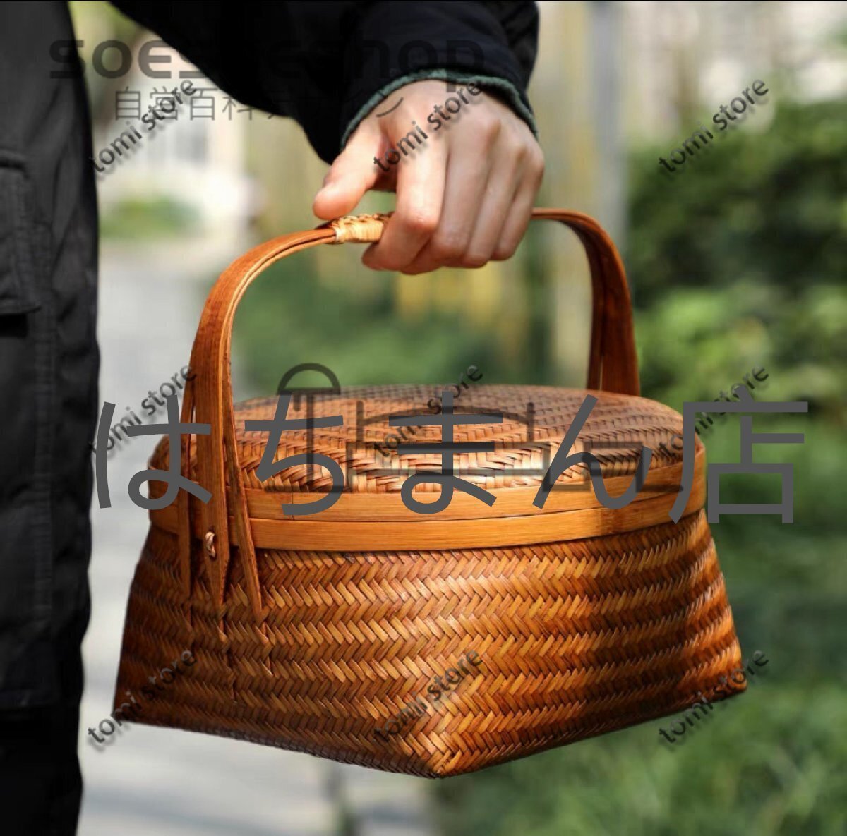 - 自然竹編み上げカゴバック 手作りバスケット ナチュラル買い物カゴ 収納