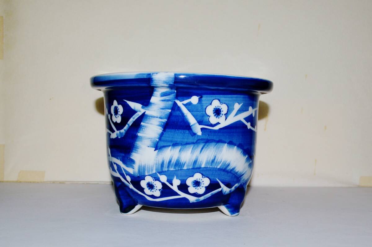 - 尾張の吉祥図梅の絵 外縁丸懸崖形の18.3㌢の鉢