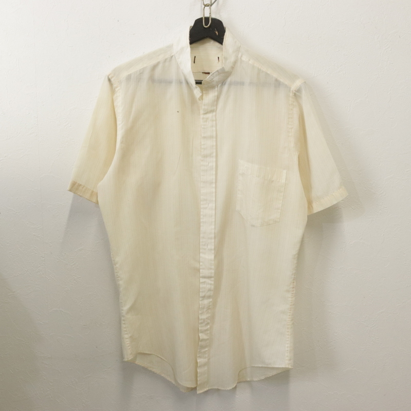 > m331 70sビンテージ 半袖シャツ■1970年代製 約Mサイズくらい アイボリー ストライプ コットン ポリエステル アメカジ ストリート 古着