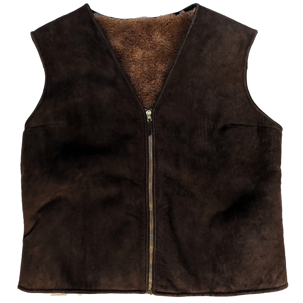 - vintage RITSOH zip mouton スエード vest brown 毛皮 Vネック 古着 ベスト 羊