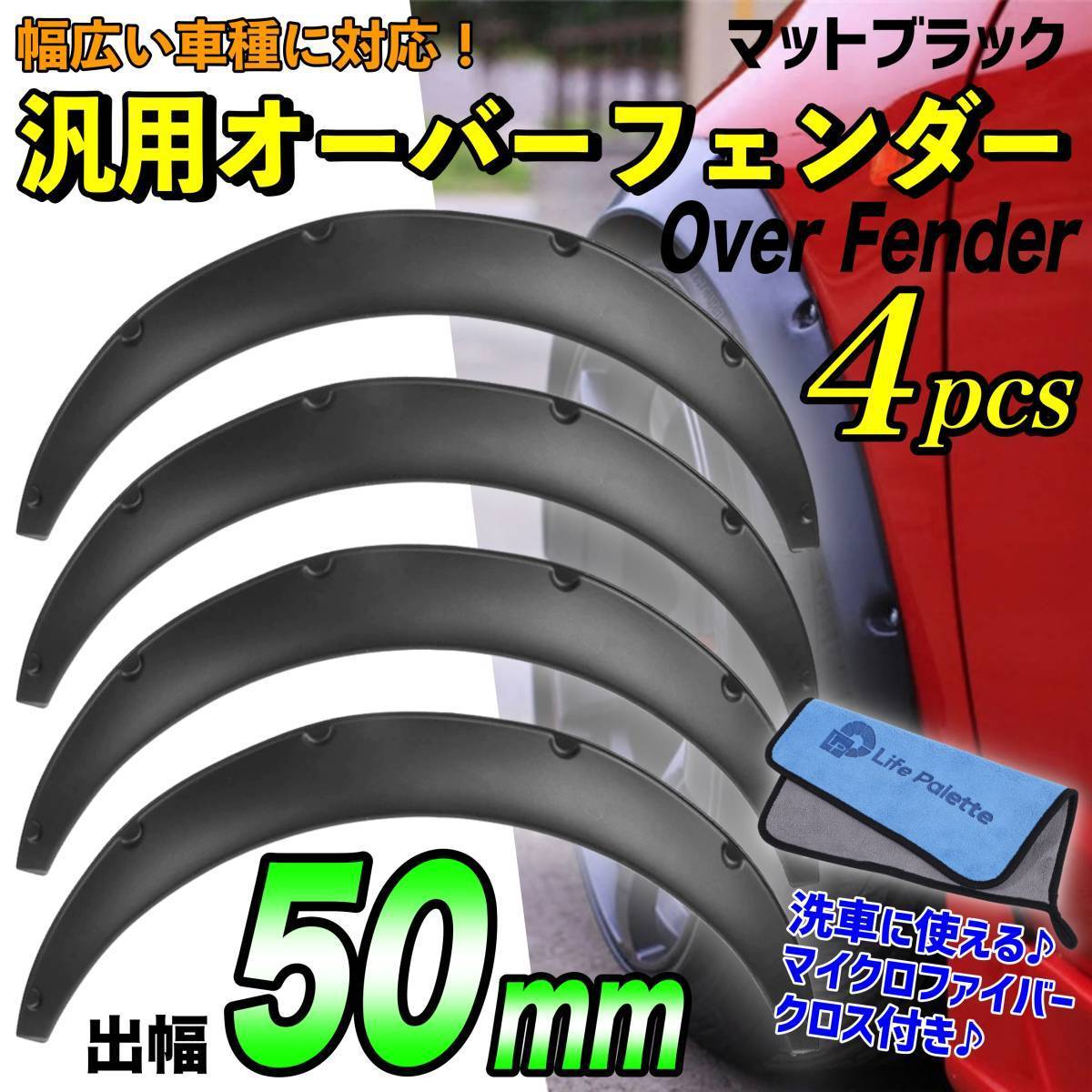 > 汎用 オーバーフェンダー マットブラック 4枚セット ジムニー JB23W JA12V JA22W JA11V カプチーノ EA21R EA11R ハミタイ 旧車 黒50mm