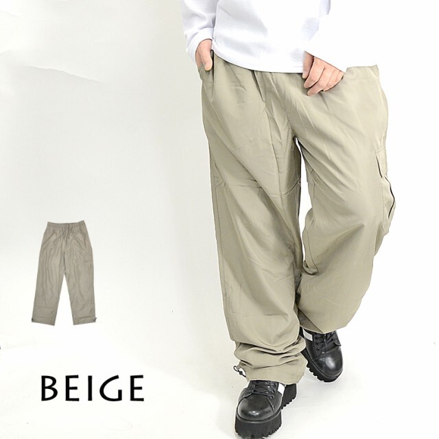 - アシメ左右非対称 ポリ素材 ワイド カーゴパンツ 左右非対称 38661 メンズ トリコット 新品 ベージュ L