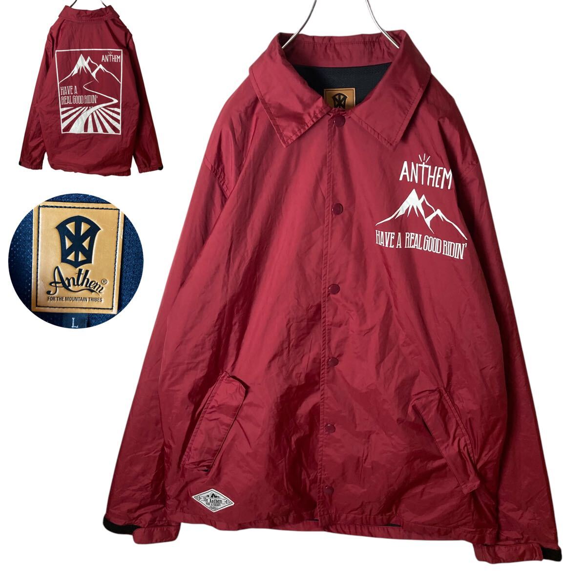 - 希少デザイン古着マウンテンビッグプリントナイロンコーチジャケットボルドーゆったり