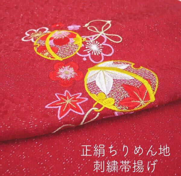 - 正絹 刺繍 帯揚げ 振袖用 ちりめん生地 oa-044 赤 レッド 成人式 結婚式 卒業式 お洒落着物 和装
