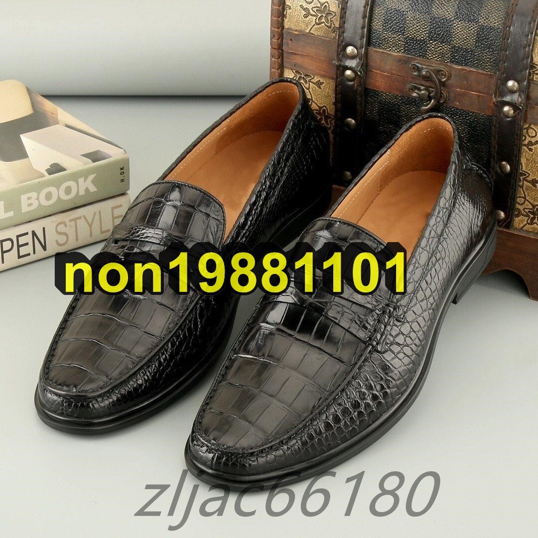 > ワニ革 クロコダイル本物 本革 レザー 腹革使用 水染 モカシン ローファー スリッポン メンズシューズ 通勤靴 四季通用 サイズ選択可能