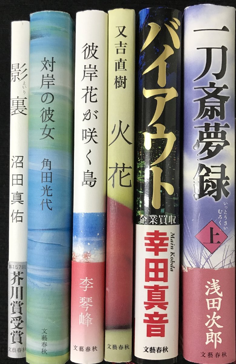 - 文藝春秋 6冊まとめ売り(影裏・対岸の彼女・彼岸花が咲く島・火花・バイアウト・一刀斎夢録 上)