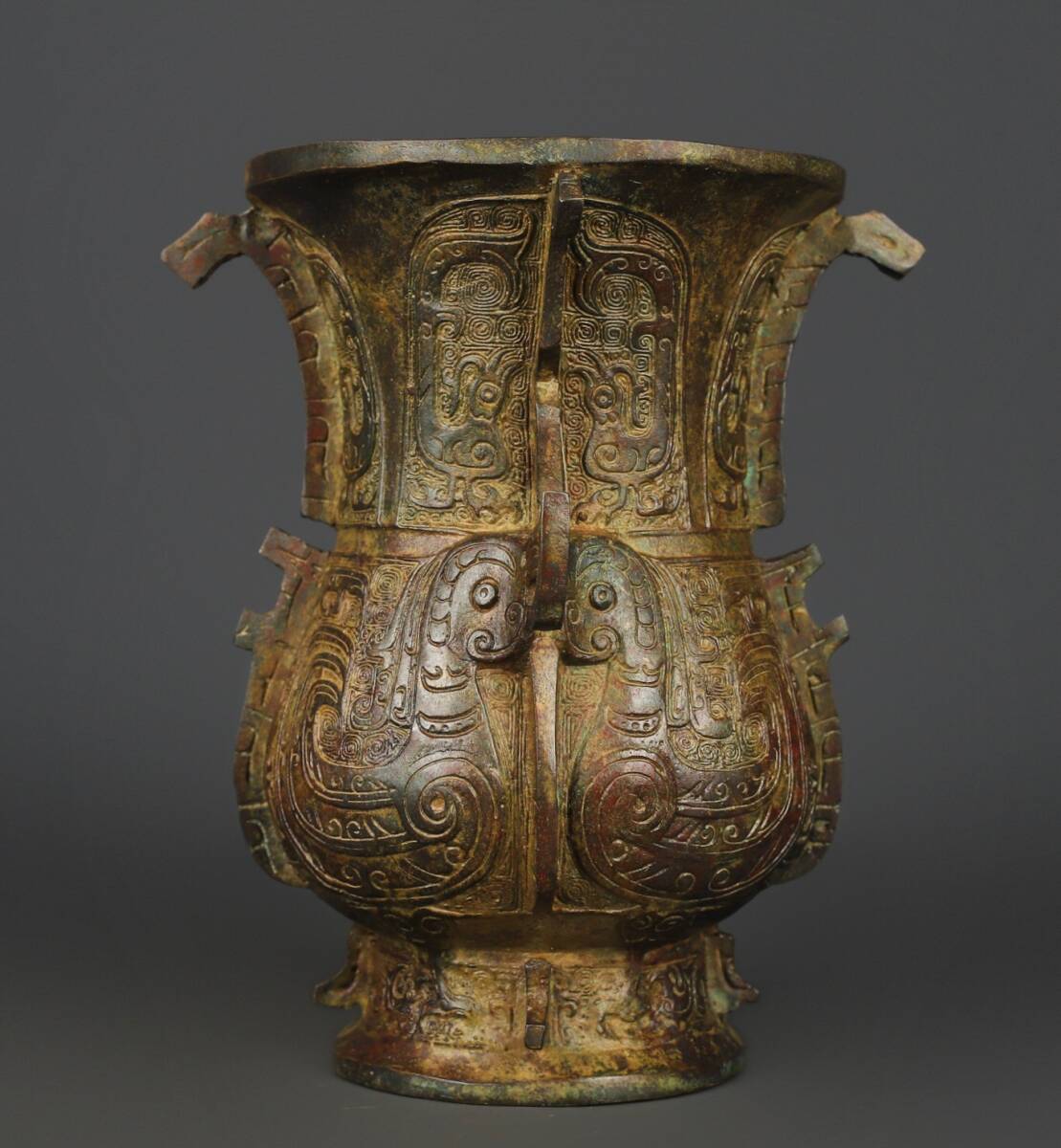- ▽鴻▽ 西周 青銅製 鳳鳥紋圓尊 置物 古賞物 中国古玩 中国古美術