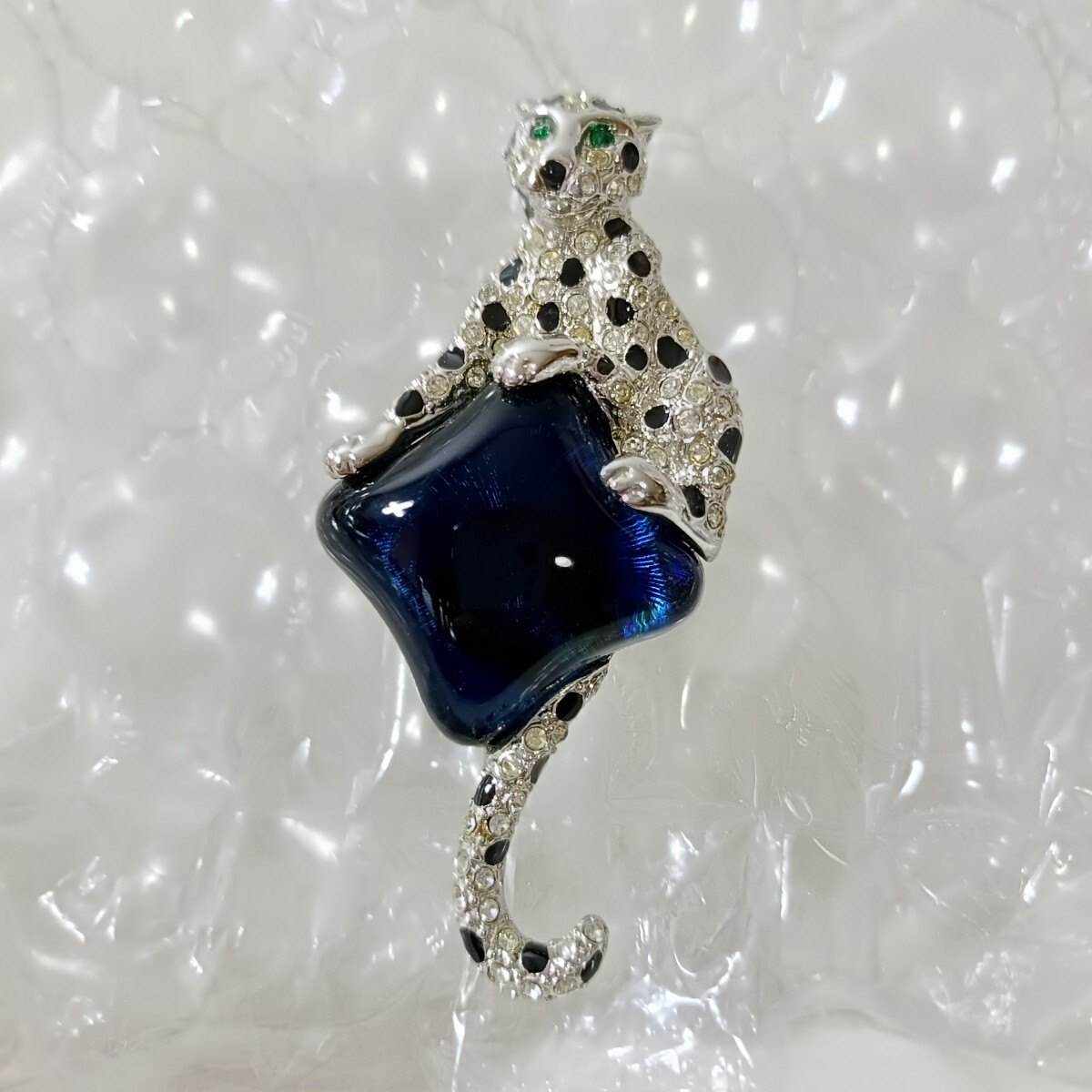 - 90s CABOUCHON カボション ヴィンテージ パンサー ブローチ 8cm 美品 [クリスタルカボション ビンテージアクセサリー ]