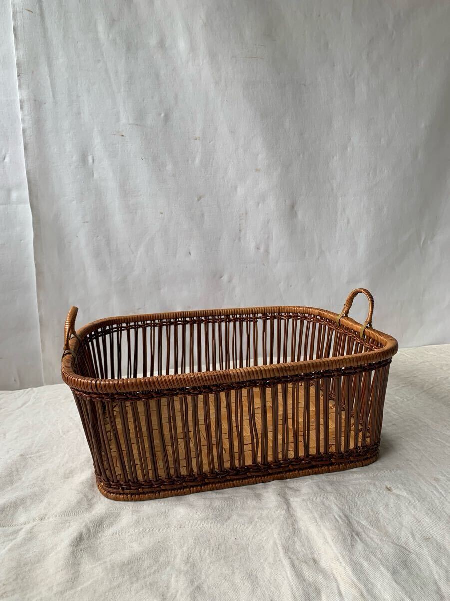 - 美品 デザインが素敵な持ち手付カゴ籠かご 小物入れバスケット昭和レトロ古道具アンティークビンテージ店舗什器インテリアディスプレイ収納