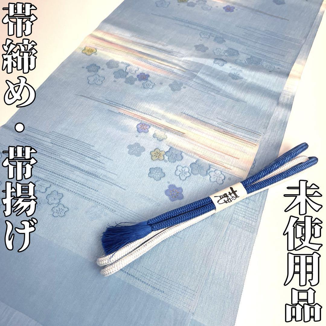 - 【着物と帯 時流】O25483◆正絹 帯揚げ&帯締め◆梅 水色 未使用品