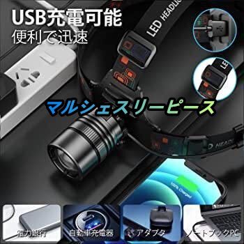 - LED ヘッドライト 充電式 防水 ヘッドランプ 高輝度XHP70ウィック6000ルーメン 三つ点灯モード ヘルメット ライト ズーム可能 90度調整