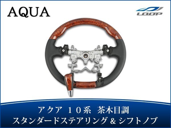 > アクア NHP10系 ステアリング ハンドル スタンダードタイプ シフトノブ セット 茶木目調 H23.12~