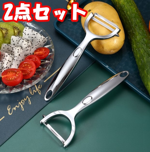 - 【2点セット】ステンレス 皮むきナイフ クイックピーラー キッチン用品 調理器具 多機能カンナ (平型)