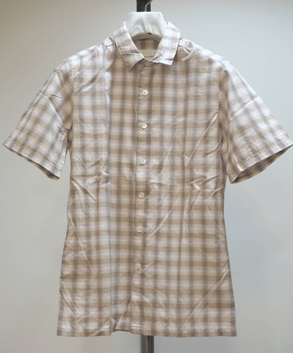 - ステファンシュナイダー 13SS半袖チェックシャツ3茶×白 Belgium製 STEPHAN SCHNEIDER