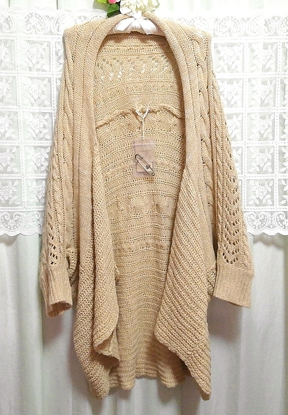 - 亜麻色ニットポンチョカーディガン6,660円タグ Flaxen knit poncho cardigan