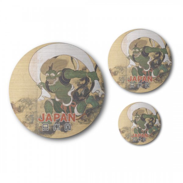 - 日本製 浮世絵 ステッカー 3点セット 丸型 風神 ヘアライン マット 新品 日本の美しさ お土産 プレゼント おしゃれ シンプル 和柄 ふうじん