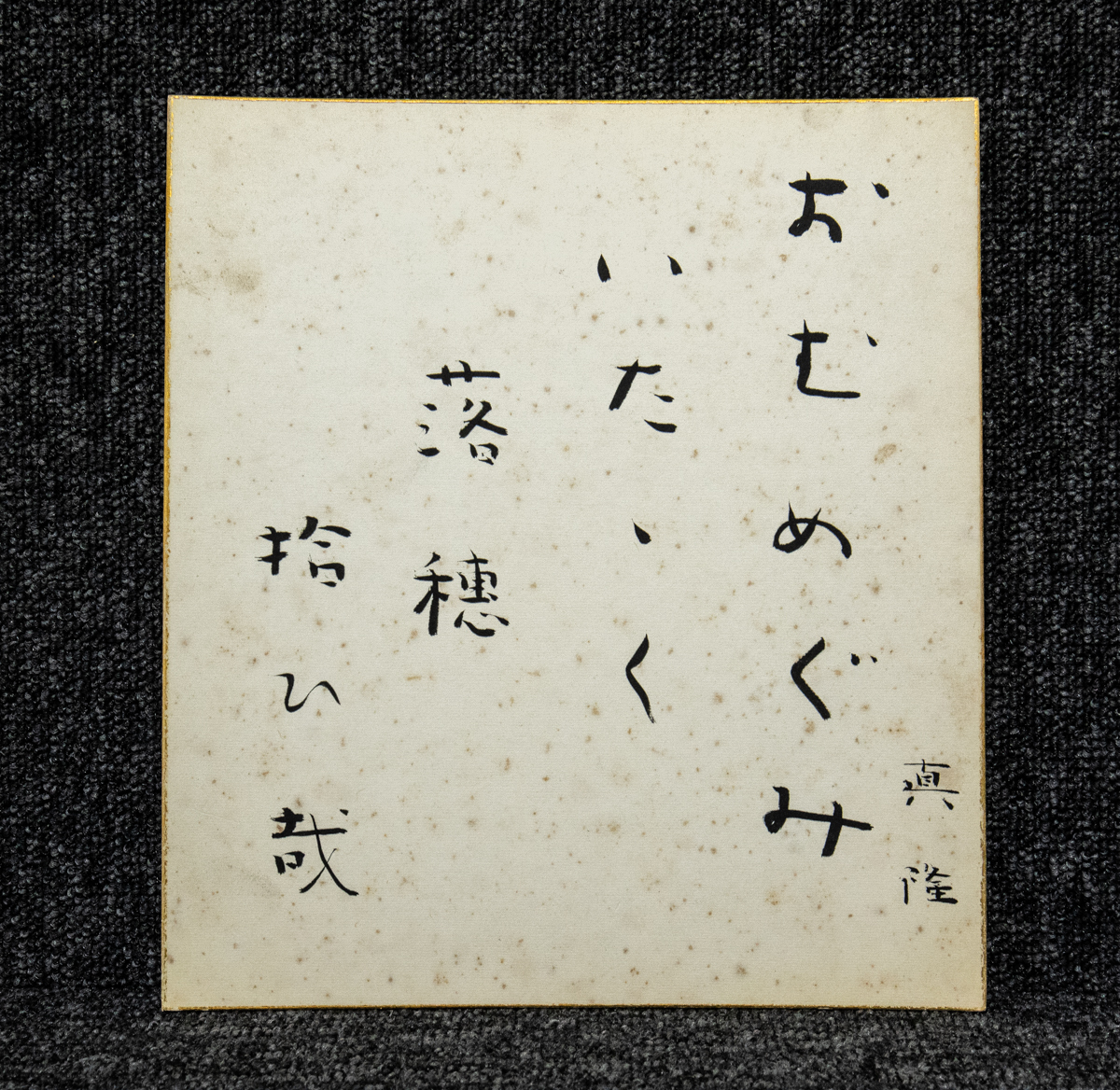 - 色紙ー1665 梅原真隆 「おむめぐむいただく落穂拾ひ哉」 龍谷大学教授 浄土真宗 勧学【真作】