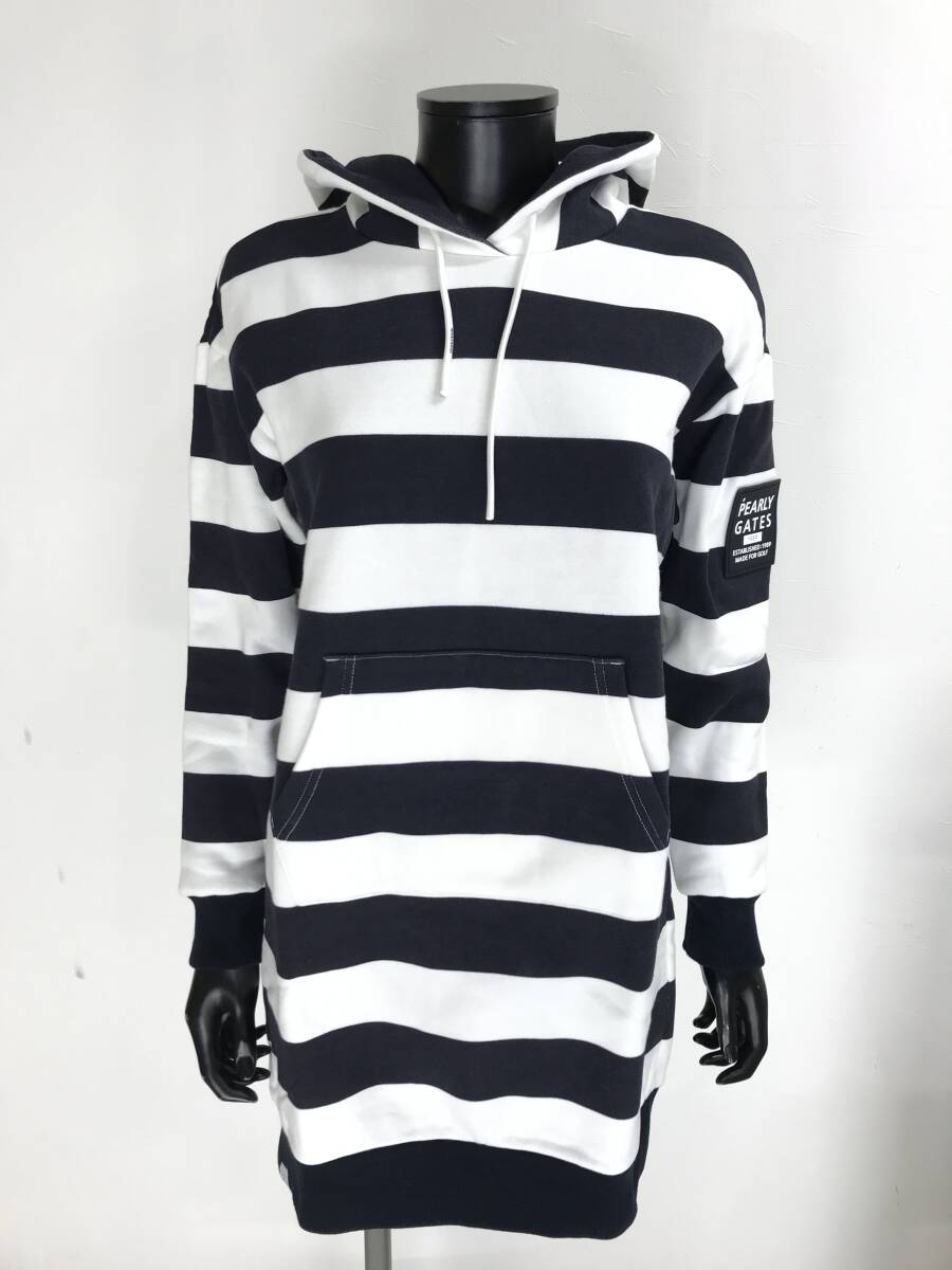 > 【USED】PEARLY GATES パーリーゲイツ 綿 長袖 パーカー ワンピース 裏起毛 ボーダー ホワイト 白 ネイビー 紺 レディース 1 ゴルフウェア