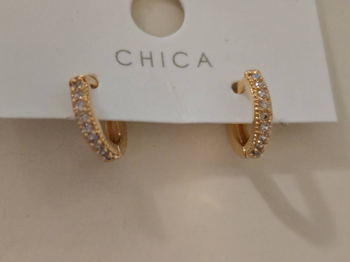 > 新品未使用 ジルコニア リングピアス ピンクゴールド ダイヤ 送料無料 リング直径0.8㎝程度 耳たぶにフィット