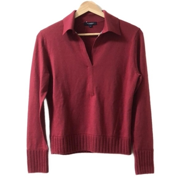 > バーバリーロンドン Burberry LONDON 長袖セーター/ニット サイズ2 M - レッド×ベージュ×マルチ レディース Vネック/ポロセーター 美品