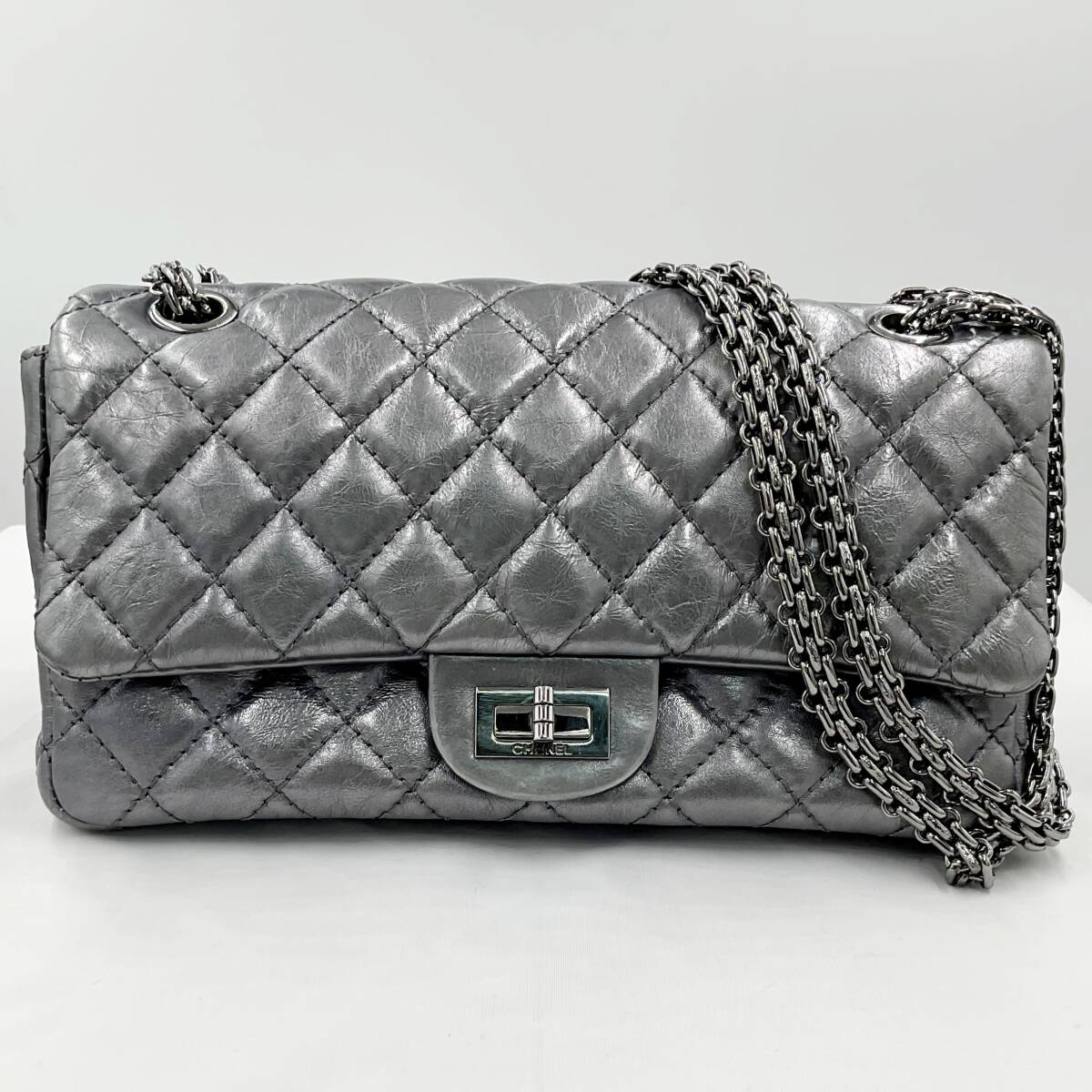 - 送料無料 中古 シャネル ショルダーバッグ CHANEL マトラッセ 2.55 Wチェーンショルダー バッグ メタリックシルバー系 148520
