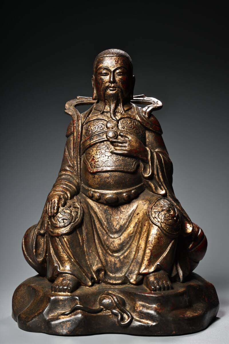 - ▽鴻▽ 銅製 泥金 真武大帝像 置物 古賞物 中国古玩 中国古美術