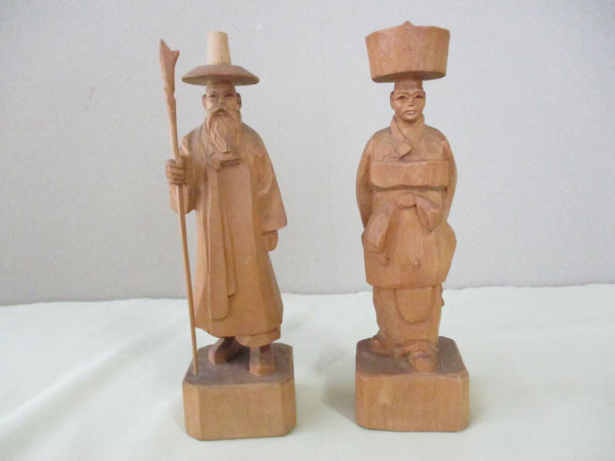 - 木彫り人形 2体セット(老人&母と子): 工芸品・民芸品・置物・郷土民芸品