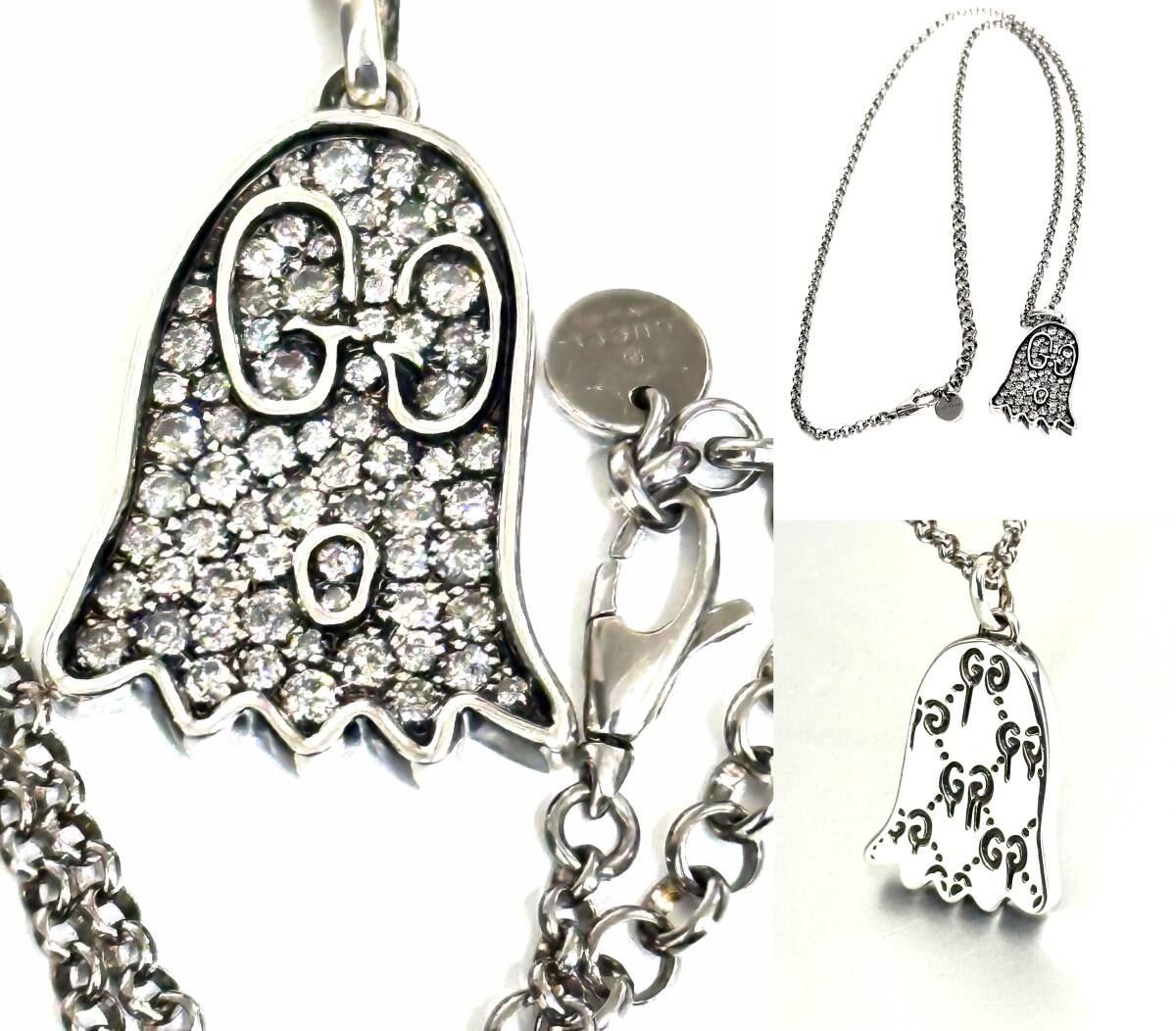 > 限定 レア 希少 GUCCI GHOST グッチ ゴースト パヴェ ダイヤ ペンダント ネックレス 男女 定価30万 GG シルバー ミケーレ 純正