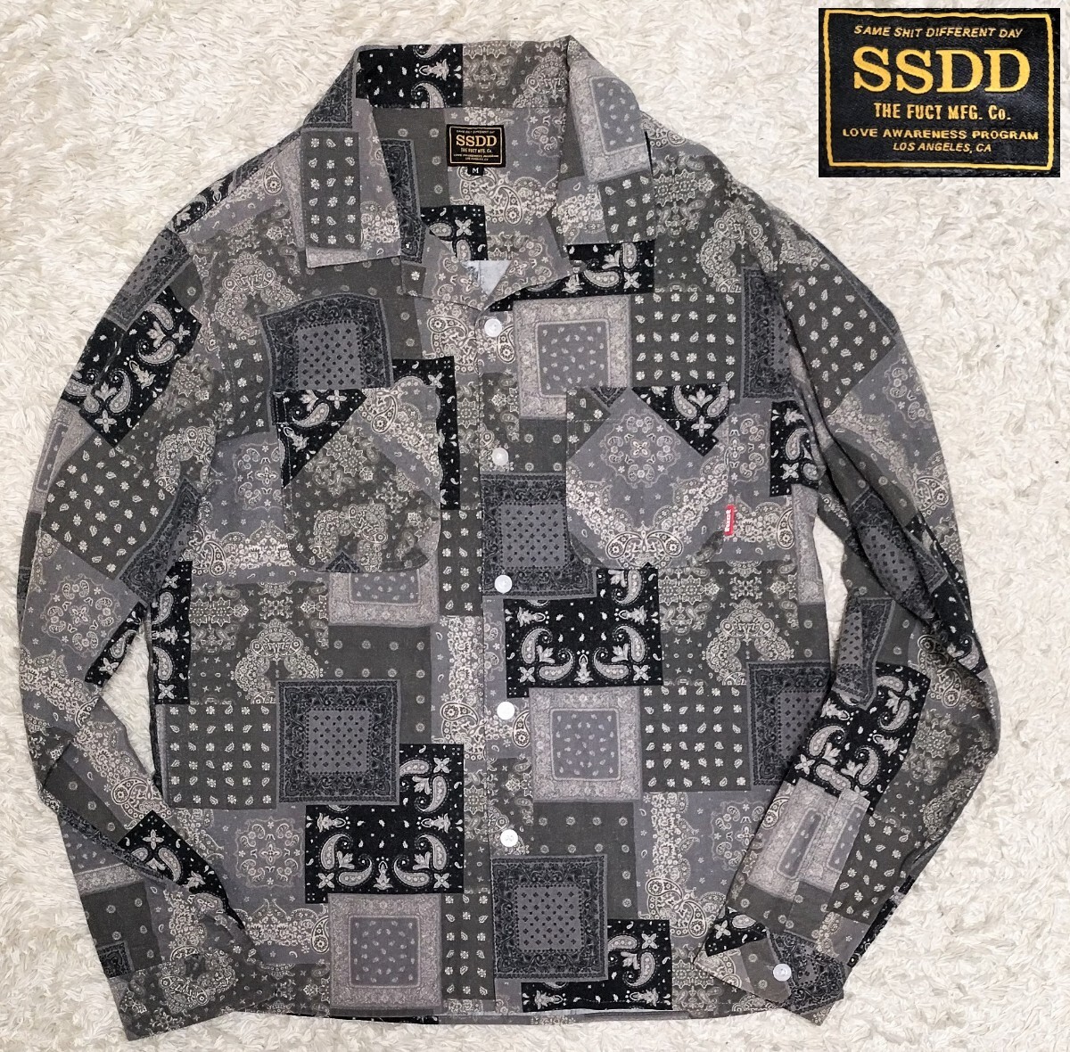 > 【バンダナ柄★】Мサイズ FUCT SSDD 長袖オープンカラーシャツ◆パッチワークプリント☆ファクト (3)