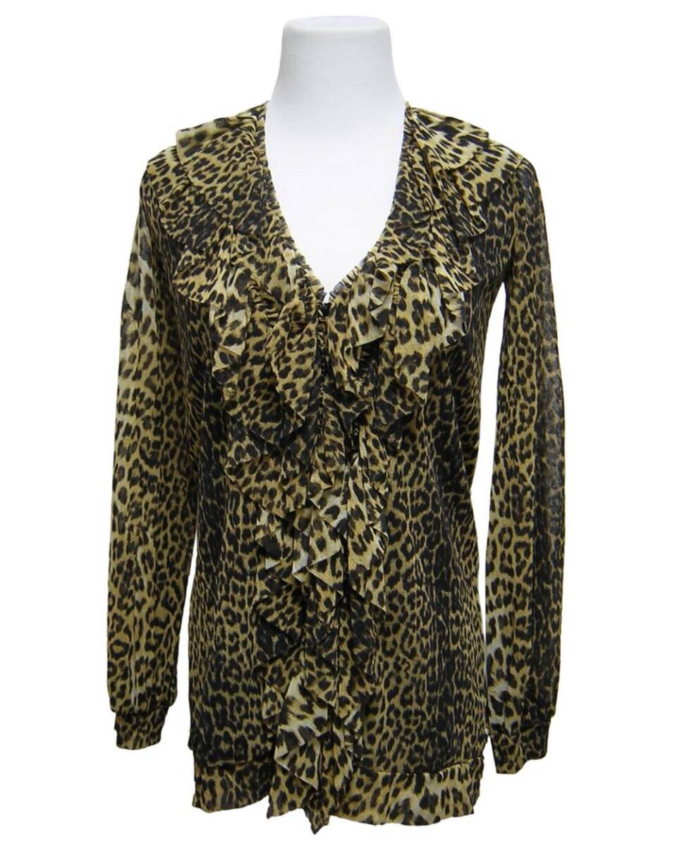 - 美品 Jean Paul GAULTIER ジャンポール・ゴルチエ SOLEIL イタリア製 レオパード柄 ラッフルチュールカーディガン トップス