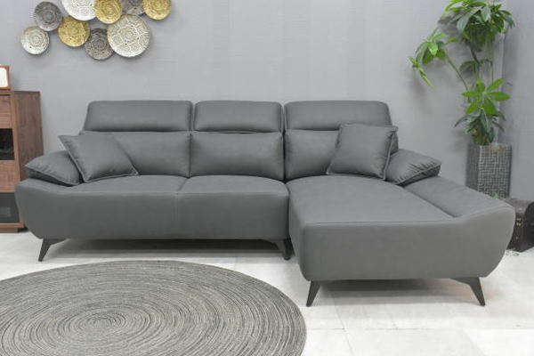 レザー風ファブリック張り3人掛けカウチソファー ネイビーグレー