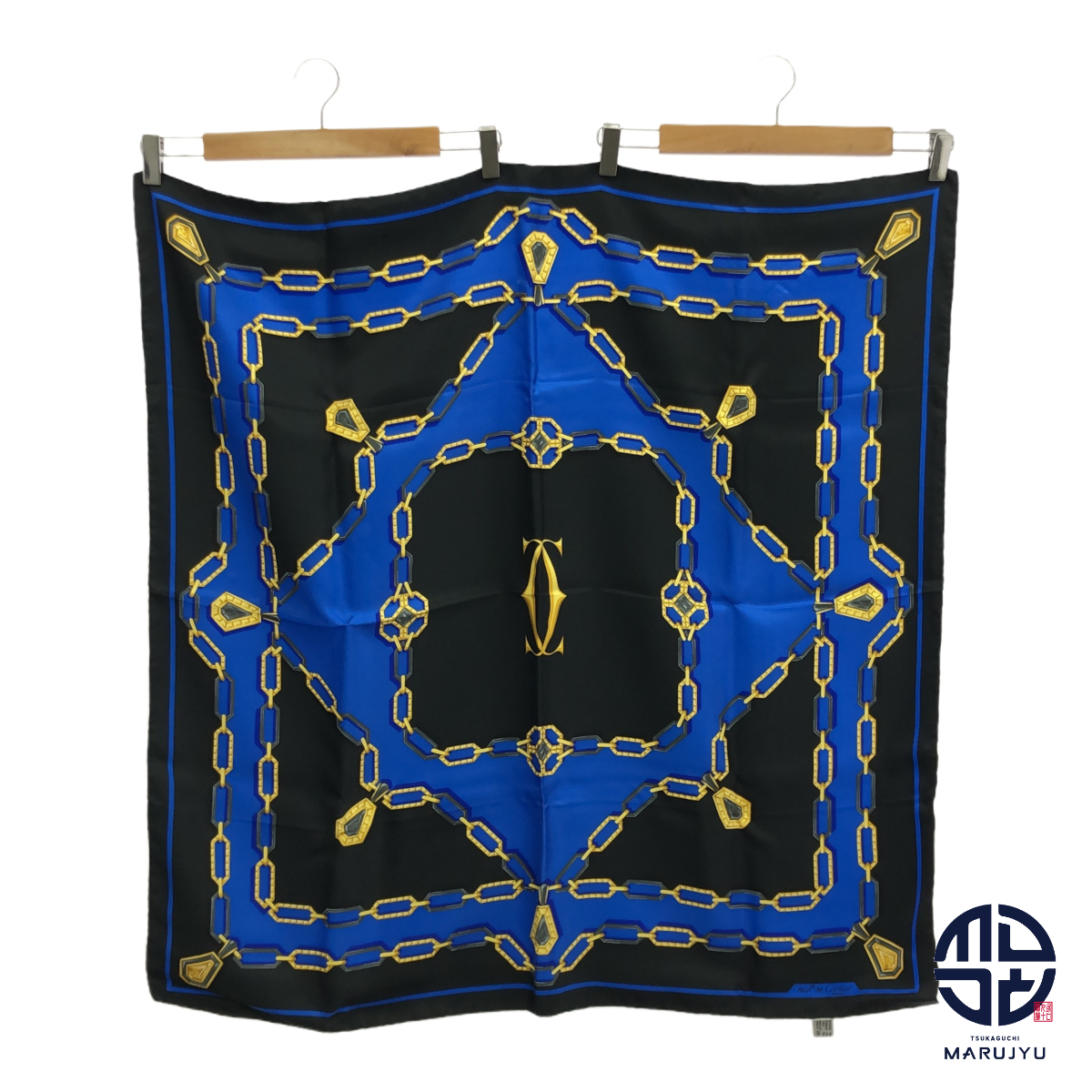 - Cartier カルティエ ブラック ブルー 黒 青 シルク スカーフ ブランド ファッション 小物