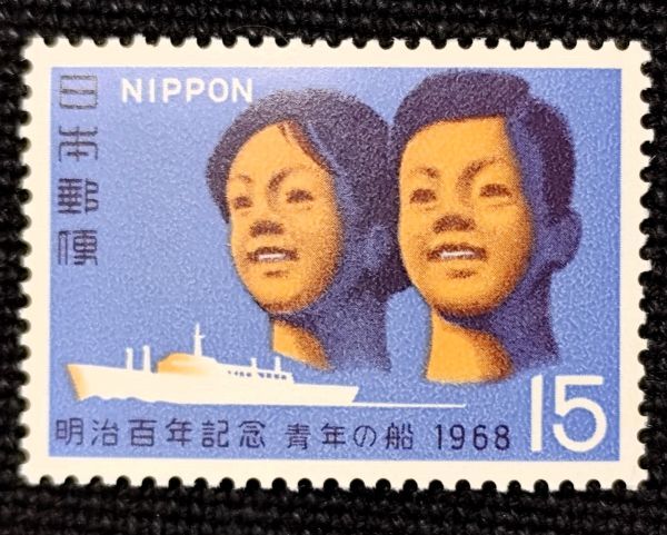 - [25040501]【明治百年記念 青年の船】単片「若人と青年の船」15円 1968年発行 美品