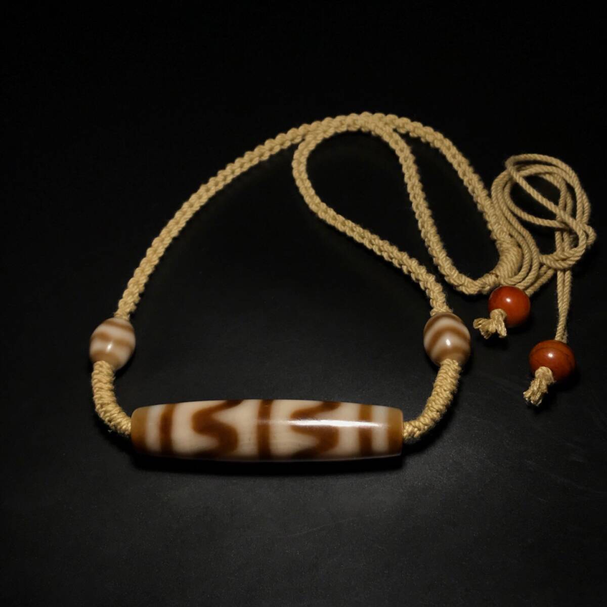 - 【超珍館蔵】瑪瑙製 細密彫 雙虎牙天珠鎖骨ネックレス 置物 古賞物 古美術品 稀少珍蔵品