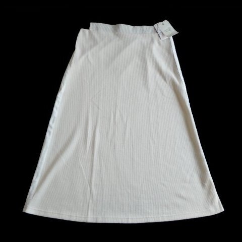> 新品 natural plus サカリバ素材 横ライン ロングスカート 白 3L 15号 XXL 2XL アイボリー ロングスカート ニットスカート