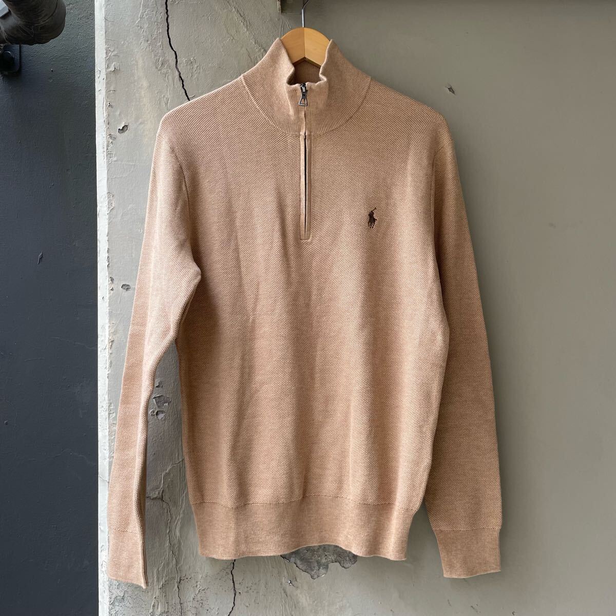 - POLO RALPH LAUREN ポロ ラルフローレン ハーフジップ セーター ニット コットン ライトブラウン S 美品