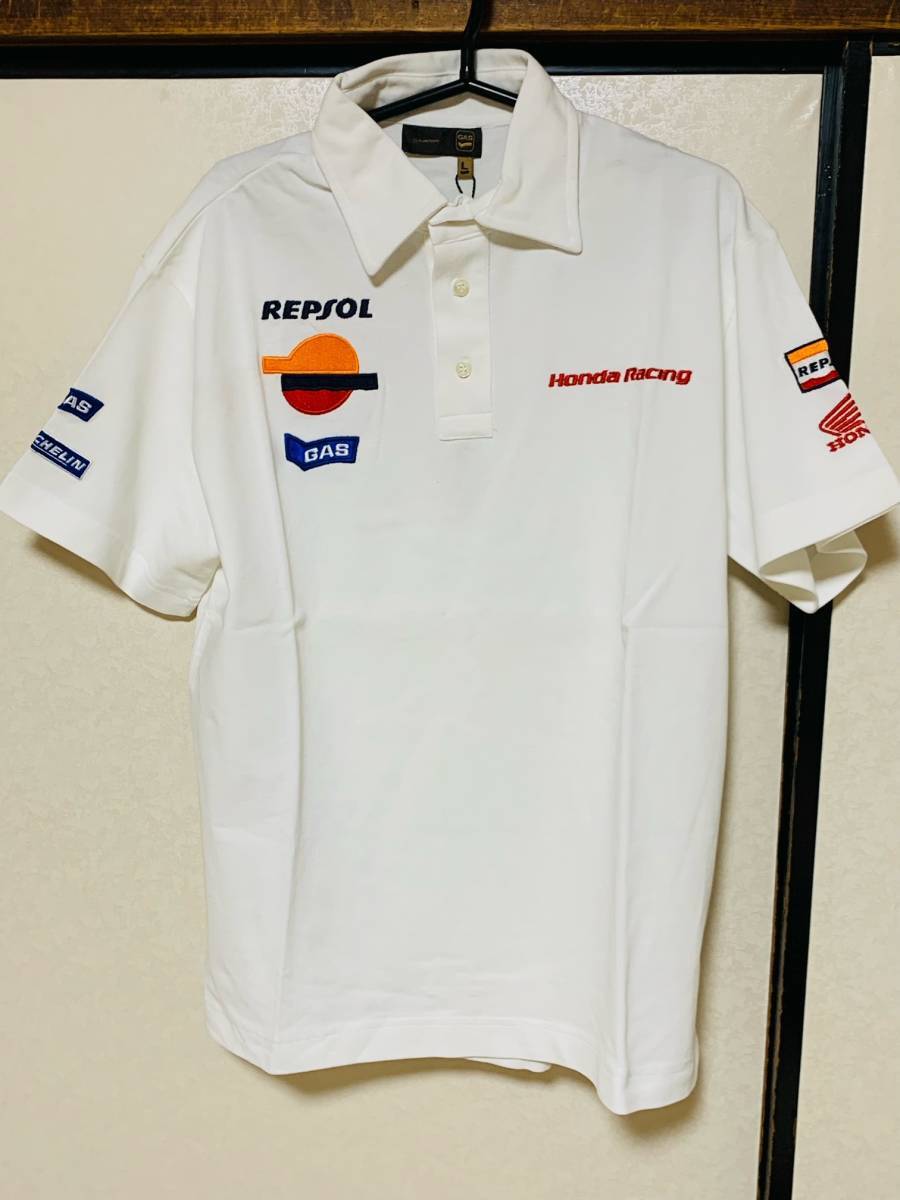 > レプソル・ホンダ・チーム ピットシャツ Lサイズ ホワイト HRC Repsol Honda Team シャツ ロゴ 刺繍