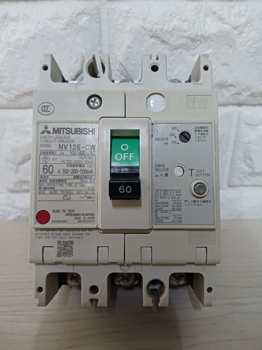 - 中古品三菱電機 MITSUBISHI 漏電ブレーカ 漏電遮断器 NV125-CW 3P60A (カ)-1-6
