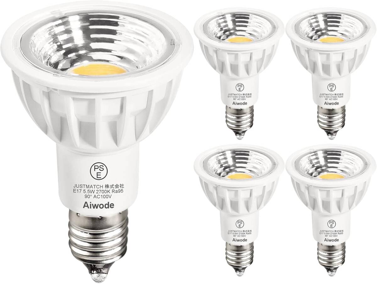 - Aiwode 5.5W LED電球 E17口金 電球色2700K 50-60W形相当LEDハロゲン電球 LEDスポットライトCRI95 明るさ550lm調光不可広角 5個セット