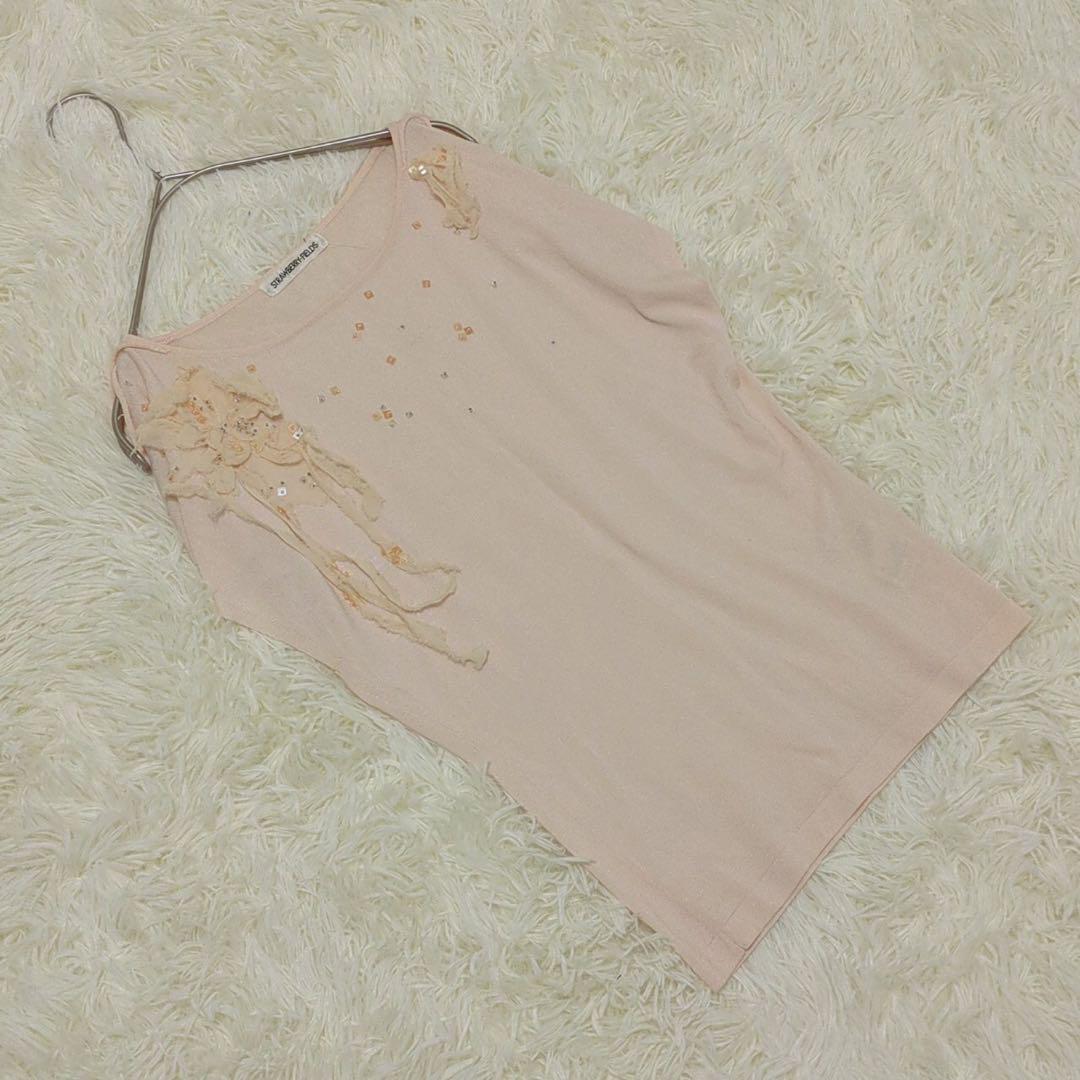 - 《ストロベリーフィールズ》 STRAWBERRY-FIELDS スリットフレンチスリーブカットソー ビーズ